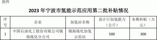 關(guān)于2023年寧波市氫能示范應(yīng)用第二批補(bǔ)貼情況的公示