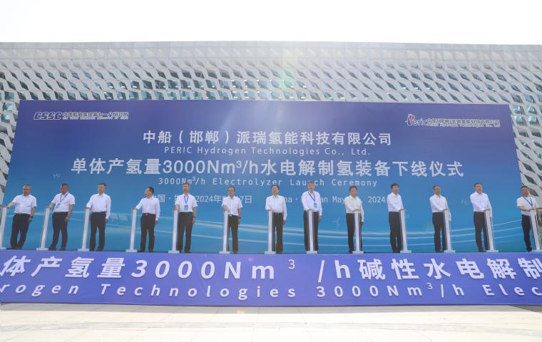 5月17日,國內(nèi)最大單體產(chǎn)氫量3000Nm³/h水電解制氫裝備下線儀式暨“氫動未來”氫能產(chǎn)業(yè)發(fā)展大會在河北省邯鄲市中國船舶集團(tuán)第七一八研究所(簡稱七一八所)舉辦。“此次下線投用的制氫裝備,突破了多項(xiàng)前沿科學(xué)難題和核心關(guān)鍵技術(shù),實(shí)現(xiàn)了單體產(chǎn)氫量由2000Nm³/h到3000Nm³/h的跨越,對我國加快構(gòu)建清潔低碳、安全高效的能源體系具有重要意義。”七一八所所長、黨委副書記李俊華表示。