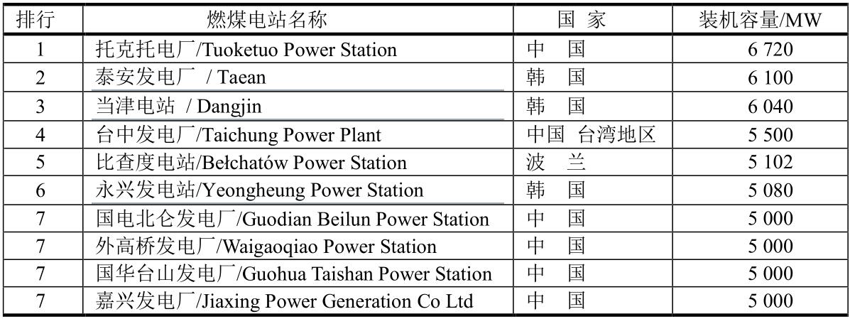全球十大燃煤電站
