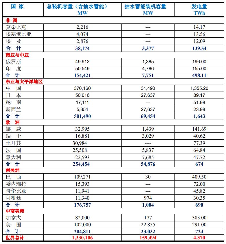 2021年世界各地區(qū)主要水力發(fā)電國家