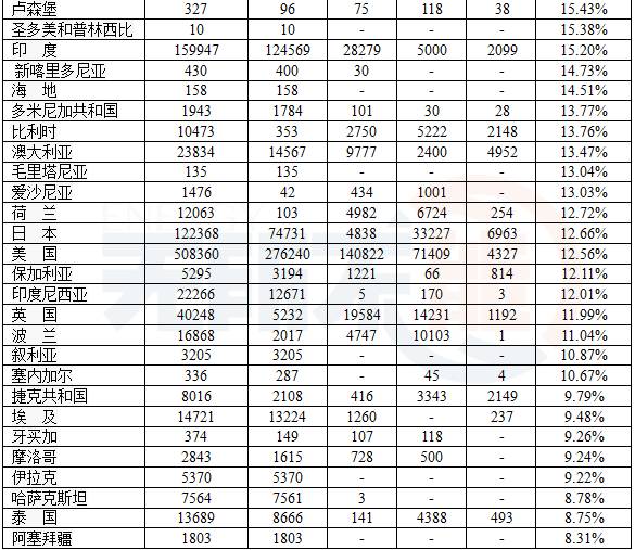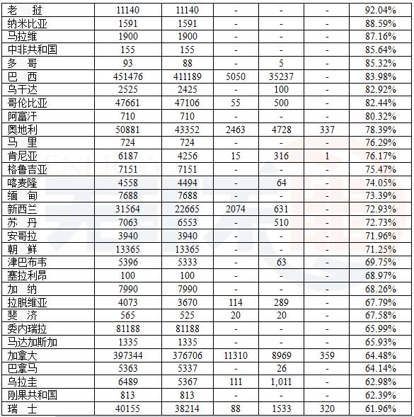 美國最強(qiáng),2015年占全球41%的份額,其次是巴西。美國和巴西占全球總量的65%。