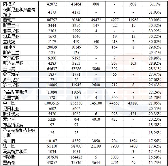 表2 wiki:世界各國再生能源發(fā)電 (單位:GWh)