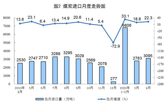 煤炭進(jìn)口增長較快,交易價(jià)格有所下跌。4月份,進(jìn)口煤炭3095萬噸,同比增長22.3%;1—4月份,進(jìn)口煤炭1.3億噸,同比增長26.9%。港口煤炭綜合交易價(jià)格繼續(xù)下跌,5月8日秦皇島港5500、5000和4500大卡煤炭價(jià)格分別為每噸501元、442元和396元,比4月3日分別下跌39元、41元和36元。