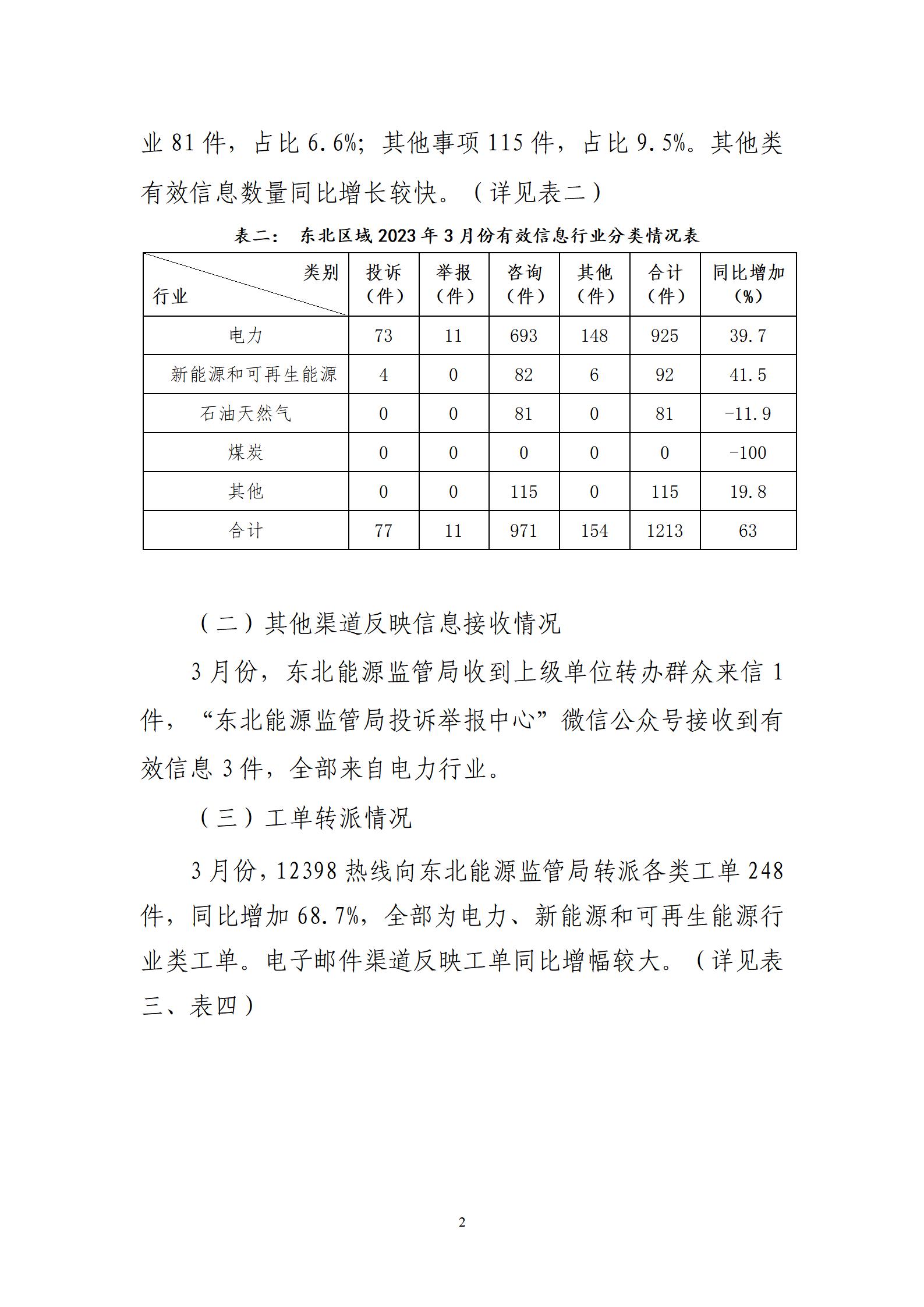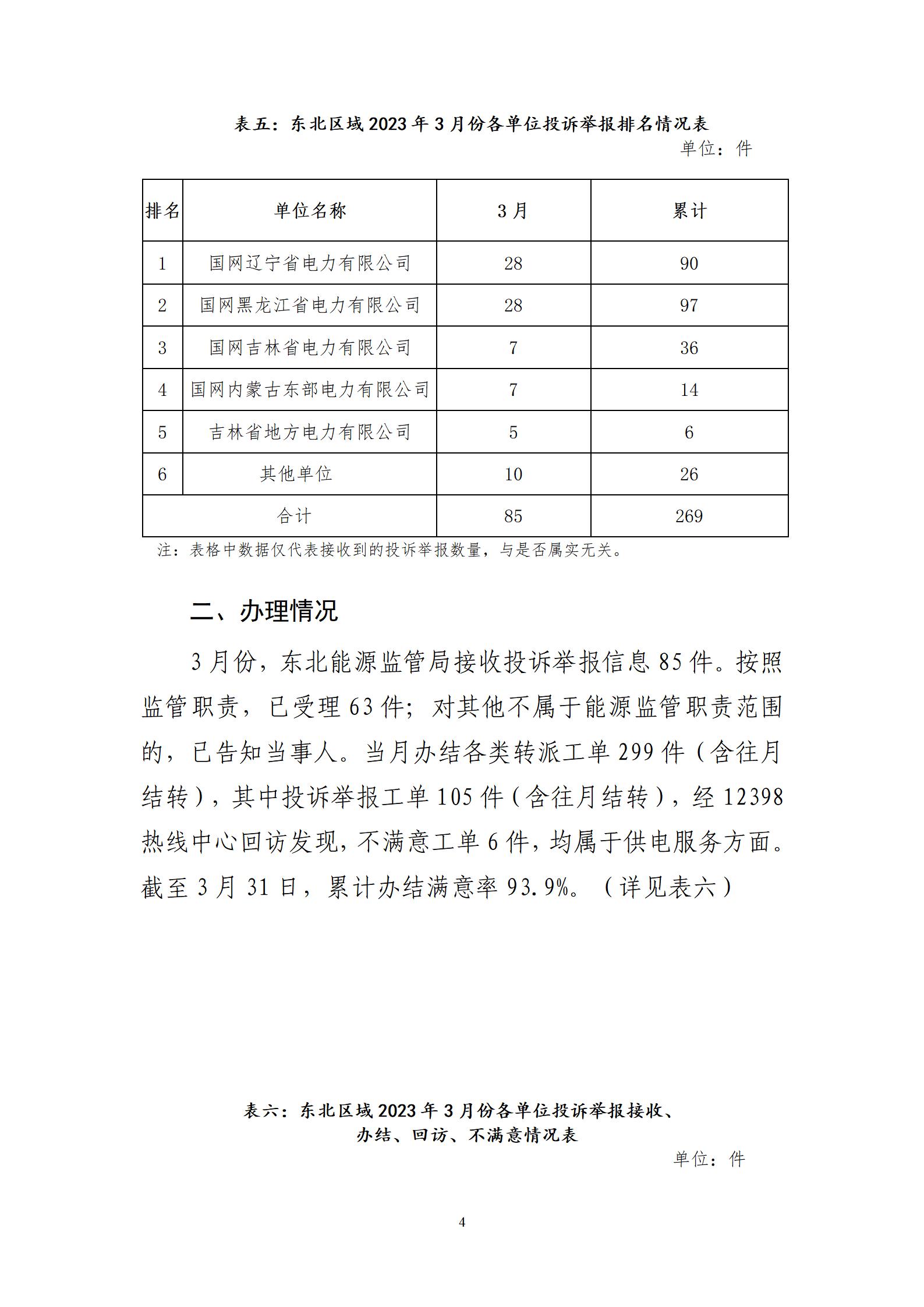 2023年3月份東北區(qū)域能源監(jiān)管投訴舉報(bào)辦理情況