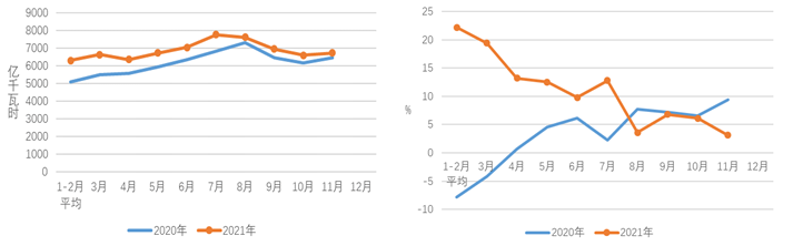 圖1 2020、2021年分月全社會(huì)用電量及其增速