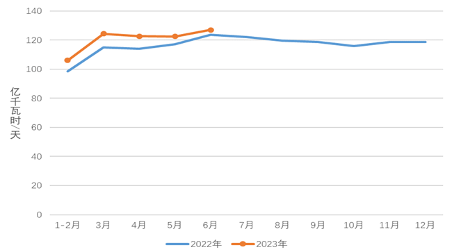 分產(chǎn)業(yè)看①,1-6月,第一產(chǎn)業(yè)用電量577億千瓦時(shí),同比增長(zhǎng)12.1%;第二產(chǎn)業(yè)用電量28670億千瓦時(shí),同比增長(zhǎng)4.4%;第三產(chǎn)業(yè)用電量7631億千瓦時(shí),同比增長(zhǎng)9.9%;城鄉(xiāng)居民生活用電量6197億千瓦時(shí),同比增長(zhǎng)1.3%。