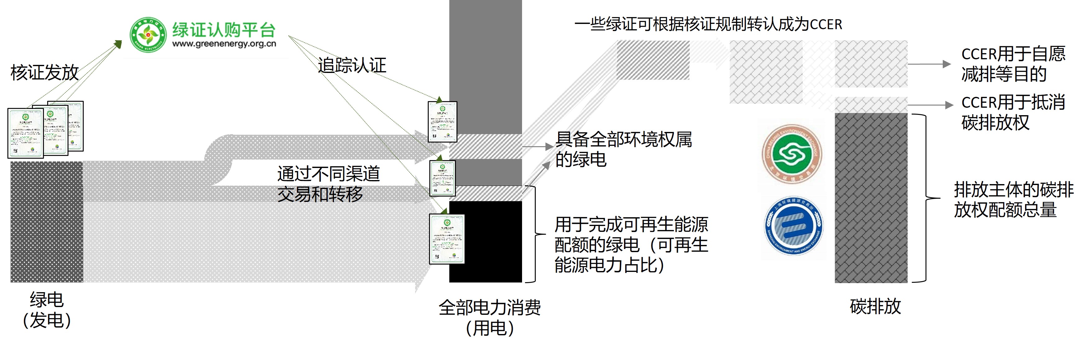 從實(shí)踐層面看,在涉及綠電的市場(chǎng)化機(jī)制(如CCER、綠證等)之外,可再生能源專場(chǎng)交易、打捆外送交易等不涉及環(huán)境權(quán)益交易的交易機(jī)制在一些地區(qū)依然存在。如不進(jìn)行有效統(tǒng)籌,這會(huì)導(dǎo)致環(huán)境權(quán)益模糊不清,甚至可能產(chǎn)生環(huán)境權(quán)益的重復(fù)計(jì)算。重復(fù)建設(shè)、多頭管理,不僅影響市場(chǎng)規(guī)模,還不利于開(kāi)發(fā)更具靈活性和多樣化的綠電產(chǎn)品。