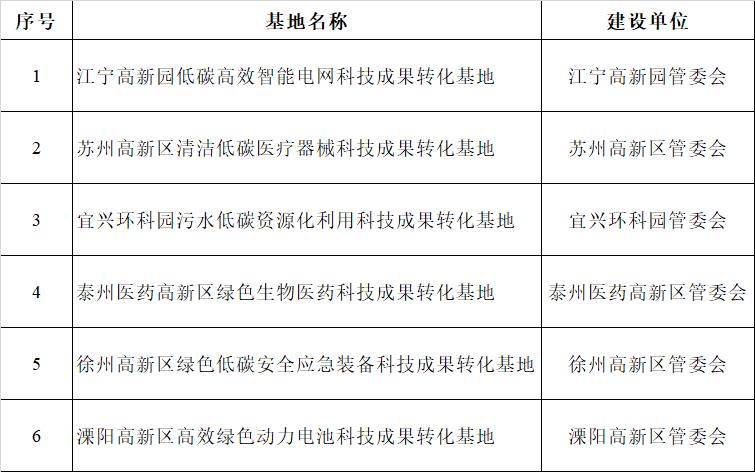 附件:首批江蘇省碳達(dá)峰碳中和科技成果轉(zhuǎn)化基地建設(shè)名單