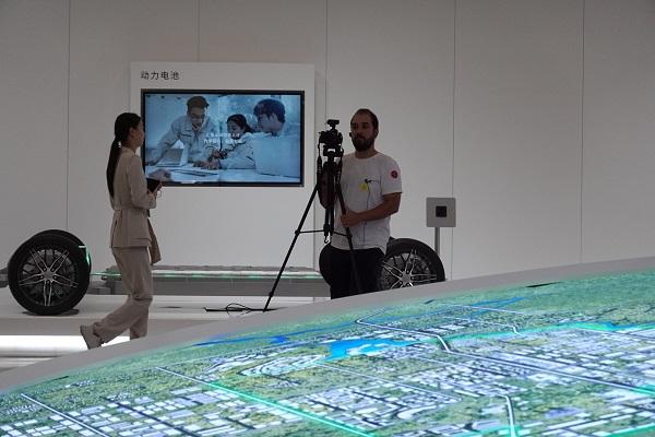 巴西勞動者電視臺(TVT)記者Mauro Ram Ramos Pintos在拍攝園區(qū)規(guī)劃圖。中國日報網(wǎng)記者 齊磊 攝
