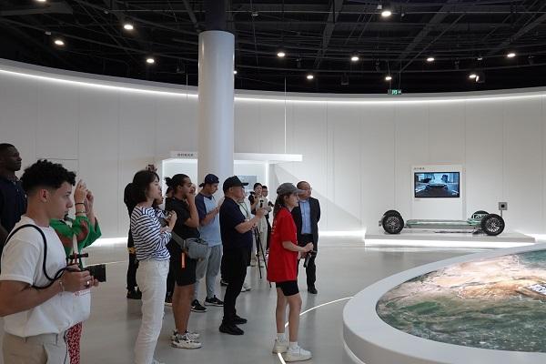 采訪團成員觀看園區(qū)規(guī)劃介紹。中國日報網(wǎng)記者 齊磊 攝