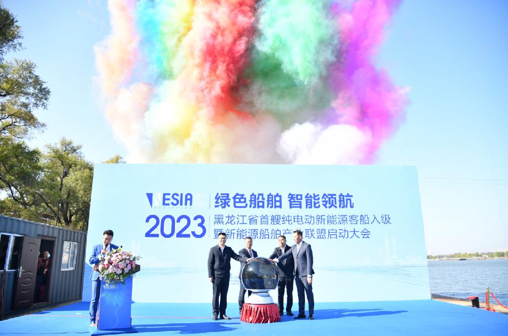 儀式上,黑龍江航運集團、哈爾濱電氣集團、哈爾濱工程大學、中國船級社哈爾濱分社等發(fā)起單位代表按下黑龍江省新能源船舶產業(yè)聯(lián)盟成立“啟動鍵”。