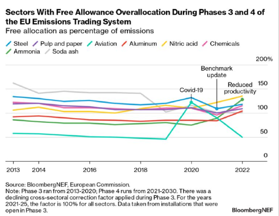 然而,如果不發(fā)生重大轉(zhuǎn)變,歷史上的超額分配將導(dǎo)致一些工業(yè)企業(yè)直到2030年后都不會全額為其排放買單。