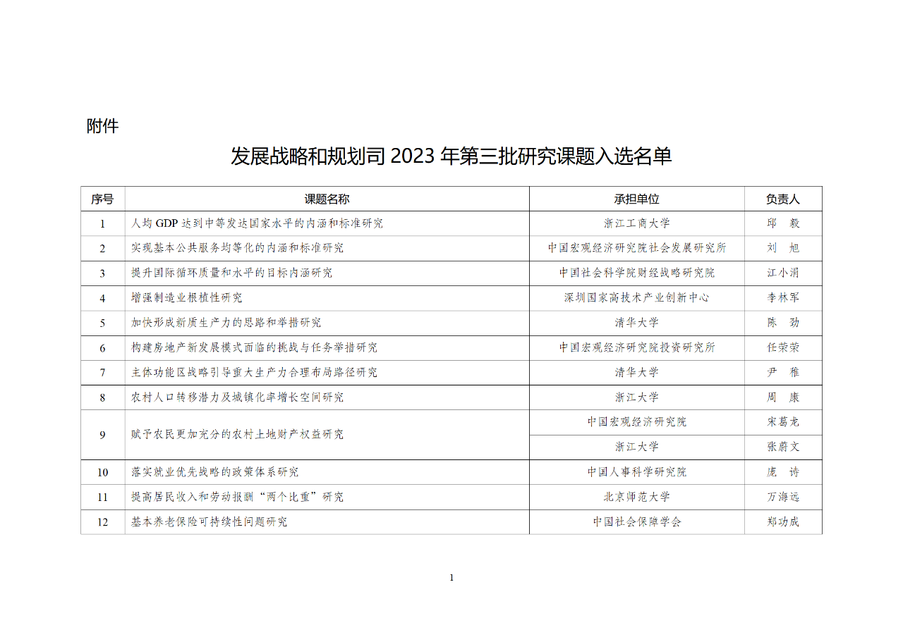 國(guó)家發(fā)展改革委發(fā)展戰(zhàn)略和規(guī)劃司2023年第三批研究課題入選公告