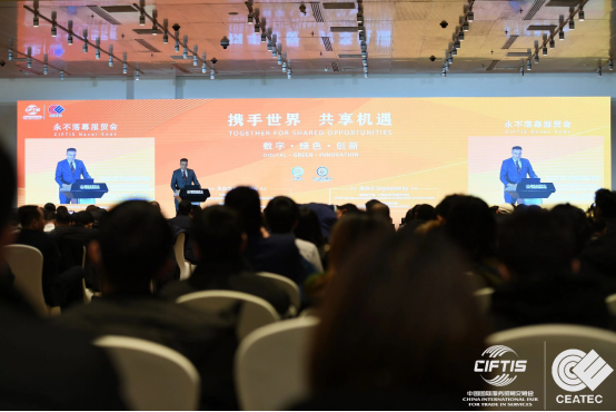 中國歐洲經(jīng)濟技術(shù)合作協(xié)會常務(wù)副會長兼秘書長陳璟玥、首都會展(集團)有限公司總經(jīng)理周一煒代表主辦方致辭,介紹服貿(mào)會電信計算機和信息服務(wù)專題與環(huán)境服務(wù)專題探索板塊融合、聯(lián)動的新路徑,共同打造“數(shù)字綠色服貿(mào)”。