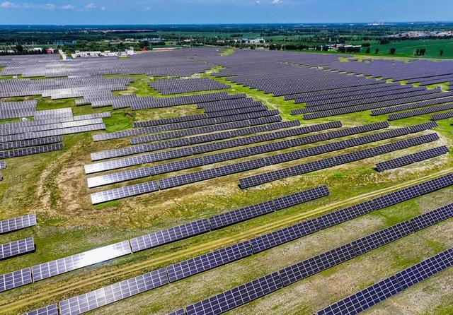 7月19日拍攝的內蒙古通遼發(fā)電總廠光伏電站。新華社記者 連振 攝