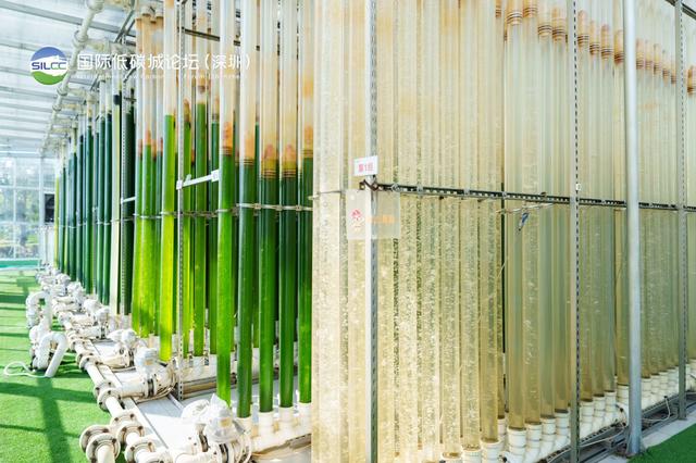 微藻在陽光房里吸收二氧化碳。