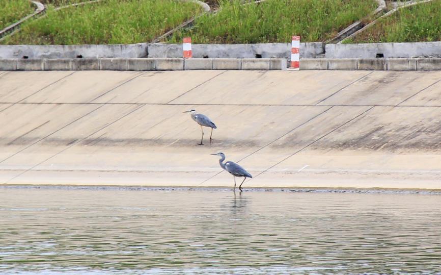 在南水北調(diào)中線渠道內(nèi)灰鸛優(yōu)雅行走