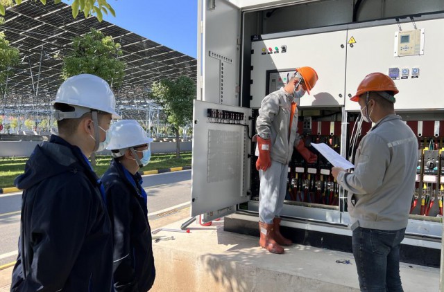 北湖污水處理廠承擔(dān)著半個(gè)武昌城的污水處理工作,為了確保光伏電站并網(wǎng)過程中及投運(yùn)后污水處理廠的正常運(yùn)營,綠色產(chǎn)業(yè)分公司的技術(shù)攻關(guān)、項(xiàng)目管理、運(yùn)維保障小組主動(dòng)擔(dān)當(dāng)作為,與北湖污水處理廠、武漢市供電公司等相關(guān)部門反復(fù)溝通,全程參與發(fā)電站并網(wǎng)方案的制定,以并網(wǎng)發(fā)電期間最大程度降低對(duì)污水處理廠運(yùn)行的影響為目標(biāo),以最短的時(shí)間、最優(yōu)的送電方式,最終制定并網(wǎng)發(fā)電實(shí)施方案,并保障了光伏并網(wǎng)發(fā)電期間廠區(qū)生產(chǎn)“零影響”。
