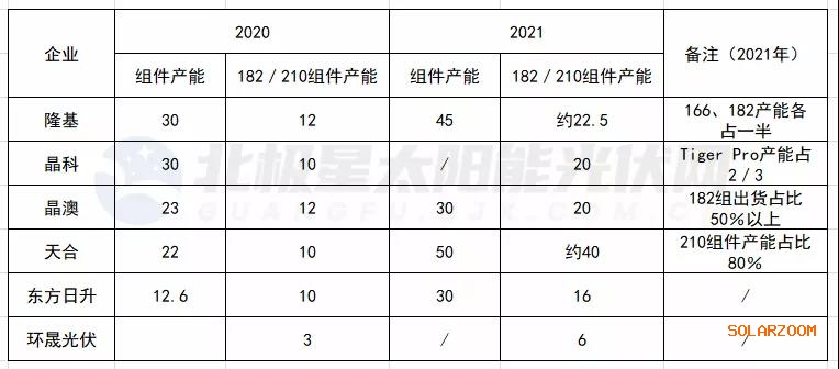 光伏頭部企業(yè)2020—2021組件產(chǎn)能(數(shù)據(jù)來(lái)企業(yè)公開信息)