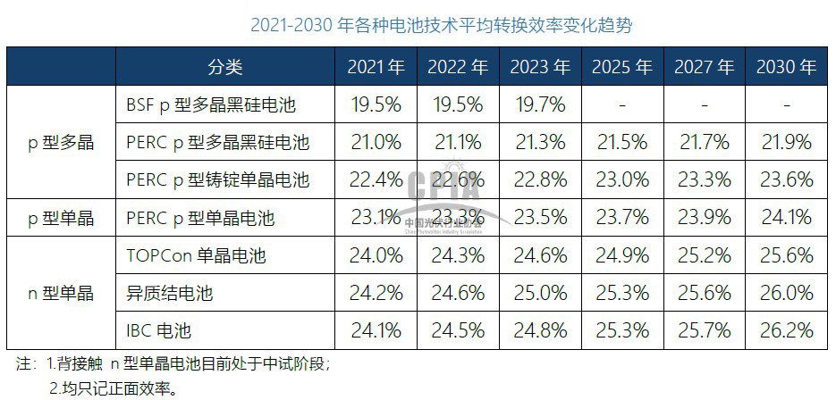 晶硅電池理論上的效率極限是29.4% ,現(xiàn)實(shí)條件可實(shí)現(xiàn)的工程極限效率是27.1%;量產(chǎn)電池方面,根據(jù)中國光伏行業(yè)協(xié)會(CPIA)預(yù)測,到2030年,常規(guī)PERC晶硅電池效率24.1%,HJT電池效率26%,TOPCon電池效率25.6%,IBC電池效率26.2%,逼近工程極限,而鈣鈦礦單結(jié)電池理論極限33%。同時,鈣鈦礦電池的結(jié)構(gòu)特性使其對雜質(zhì)和缺陷的容忍度非常高,因此實(shí)際生產(chǎn)更容易逼近理論極限。