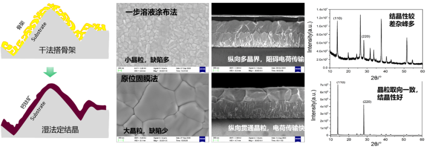 筆者認(rèn)為“原位固膜”技術(shù)是鈣鈦礦研發(fā)史上的一次思想飛躍,是打破常規(guī)認(rèn)知的靈感火花,也是另外兩項技術(shù)得以應(yīng)用的基礎(chǔ)。