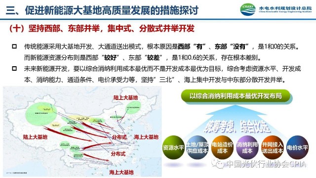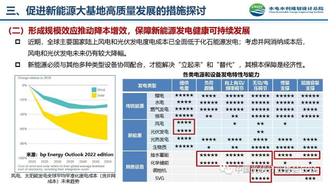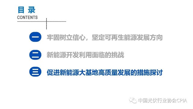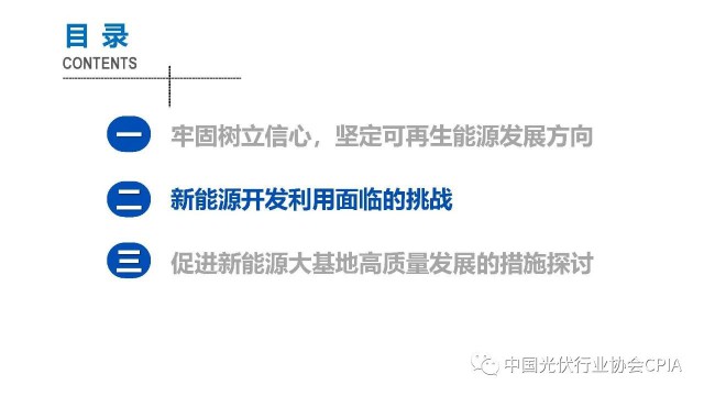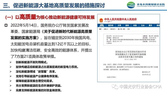 2022年12月1日,由中國光伏行業(yè)協(xié)會主辦的2022中國光伏行業(yè)年度大會暨(滁州)光伏高質量發(fā)展高峰論壇在安徽滁州成功召開。水電水利規(guī)劃設計總院新能源部副主任王躍峰作多措并舉促進新能源大基地高質量建設與發(fā)展的報告。王主任指出了新能源開發(fā)面臨的五點挑戰(zhàn),并提出了促進新能源大基地高質量發(fā)展的十條措施。