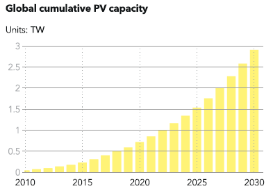 挪威船級(jí)社DNV在其最新的技術(shù)報(bào)告中表示,到2025年,全球太陽(yáng)能裝機(jī)容量將翻一番,到2030年將翻兩番,達(dá)到3,000吉瓦。