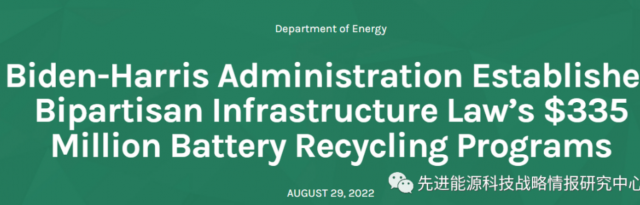近期,美國能源部(DOE)宣布多項(xiàng)信息,旨在推進(jìn)電池回收和電池快速運(yùn)行驗(yàn)證技術(shù)發(fā)展,詳情如下:1、3.35億美元支持鋰離子電池回收技術(shù)