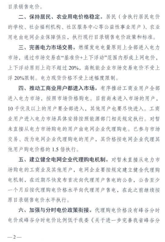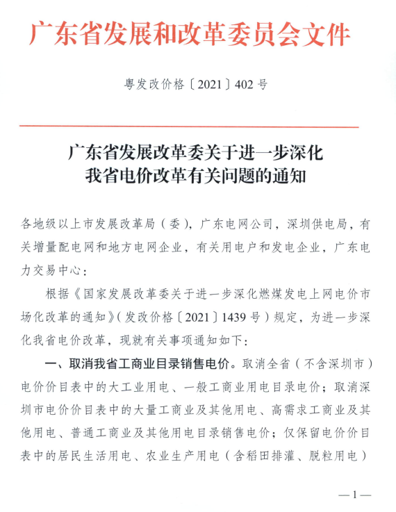 日前,廣東省發(fā)展改革委印發(fā)《關(guān)于進一步深化我省電價改革有關(guān)問題的通知》,通知明確,取消工商業(yè)目錄銷售電價;保持居民、農(nóng)業(yè)用電價格穩(wěn)定; 完善電力市場交易;推動工商業(yè)用戶都進入市場;建立健全電網(wǎng)企業(yè)代理購電機制;加強與分時電價政策銜接。