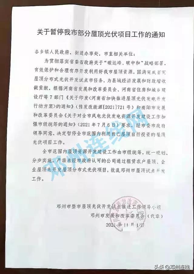 河南鄧州暫停部分屋頂光伏項(xiàng)目工作!