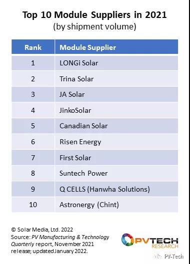 原標(biāo)題:最新!2021年全球Top10光伏組件供應(yīng)商排名