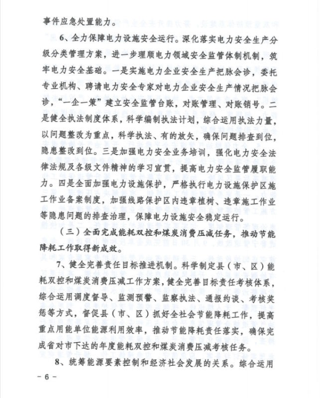 1、能源安全方面:全面落實(shí)安全監(jiān)管和設(shè)施保護(hù)職責(zé),理順監(jiān)管體制機(jī)制,以安全責(zé)任落實(shí)為抓手,全力保障煤礦安全生產(chǎn)和電力、油氣管道設(shè)施安全運(yùn)行,確保能源領(lǐng)域安全生產(chǎn)形勢(shì)持續(xù)穩(wěn)定向好。