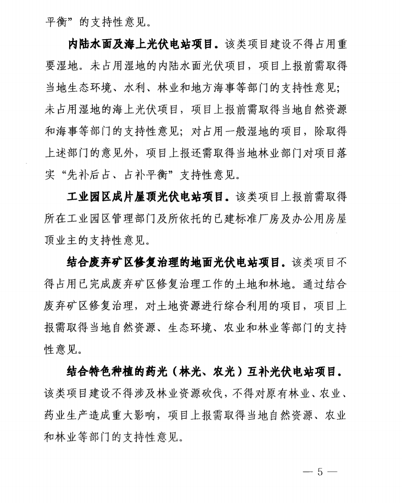 1)近海養(yǎng)殖漁光互補(bǔ)、2)內(nèi)陸水面及海上光伏、3)工業(yè)園區(qū)成片屋頂光伏、4)結(jié)合廢棄礦區(qū)修復(fù)治理的地面光伏、5)結(jié)合特色種植的藥光(林光、農(nóng)光)互補(bǔ)。
