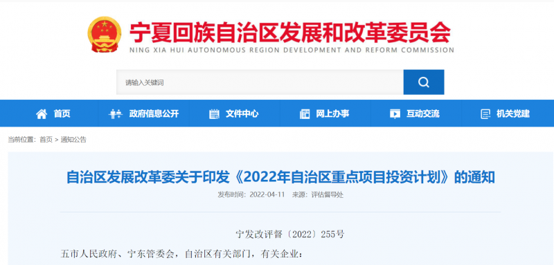 4月11日,寧夏發(fā)改委發(fā)布《2022年自治區(qū)重點(diǎn)項(xiàng)目投資計(jì)劃》,涉及光伏重點(diǎn)項(xiàng)目為6個制造業(yè)項(xiàng)目、17個重點(diǎn)光伏發(fā)電建設(shè)項(xiàng)目,規(guī)模為3.425GW。
