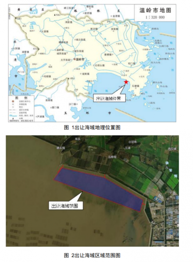 1、出讓標(biāo)的:溫嶺市東部松門漁光互補(bǔ)光伏電站項(xiàng)目海域使用權(quán)。出讓海域位于溫嶺市東南部蒼山門外塘海域,距離溫嶺市區(qū)約15km。出讓海域宗海面積分別為193.5303公頃(光伏電站)、0.9483公頃(施工平臺(tái))。出讓海域北鄰松門南片海塘,東面松門齊門塘,西面、南面為開(kāi)敞式海域。見(jiàn)圖1出讓海域地理位置圖、圖2出讓海域區(qū)域范圍圖。