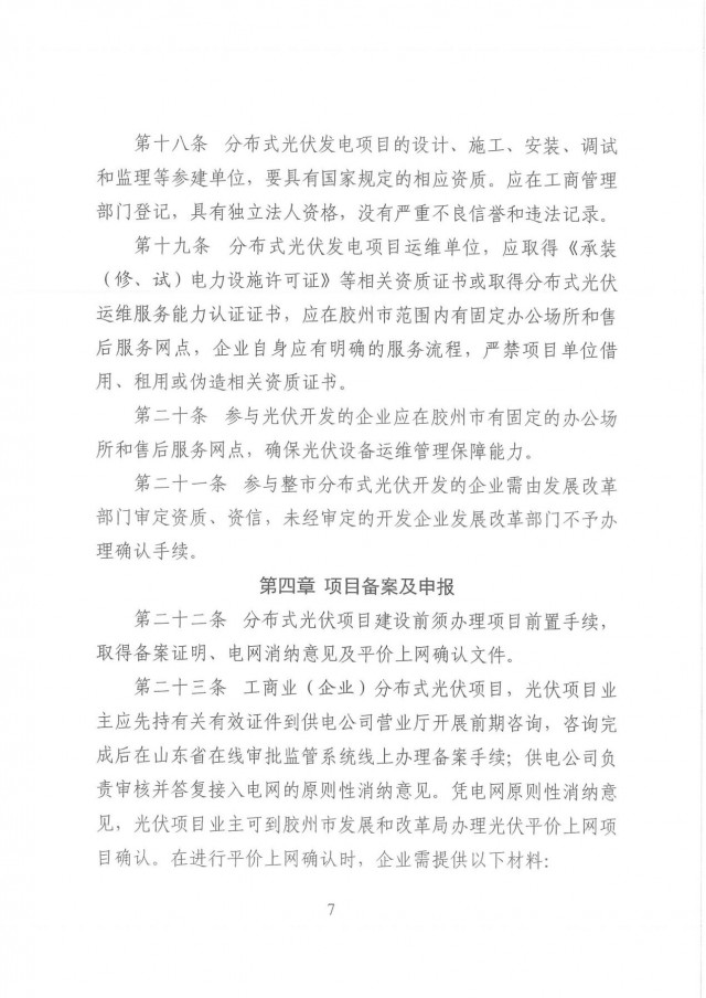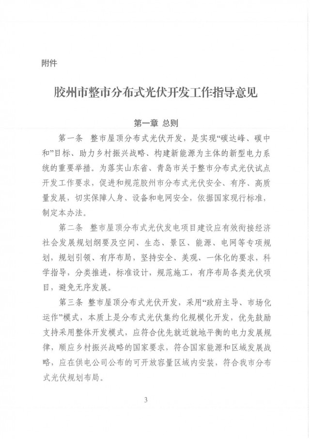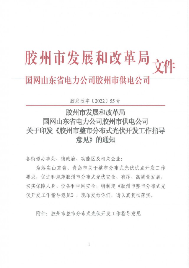 同時圍繞新型電力系統(tǒng)構(gòu)建,打造“綠色低碳”新膠州,鼓勵“光伏+工業(yè)”“光伏+農(nóng)業(yè)”、“光伏+儲能”等多種形式的“光伏+產(chǎn)業(yè)”發(fā)展,積板推進(jìn)“農(nóng)村新能源合作社”、“分布式光伏示范村”、“分布式光伏示范園區(qū)”、“分布式光伏示范企業(yè)”的建設(shè),形成可復(fù)制、可推廣的經(jīng)驗。高效推進(jìn)膠州市分布式光伏建設(shè)發(fā)展,為推進(jìn)分布式光伏規(guī)模化開發(fā)工作提供“膠州模式”。