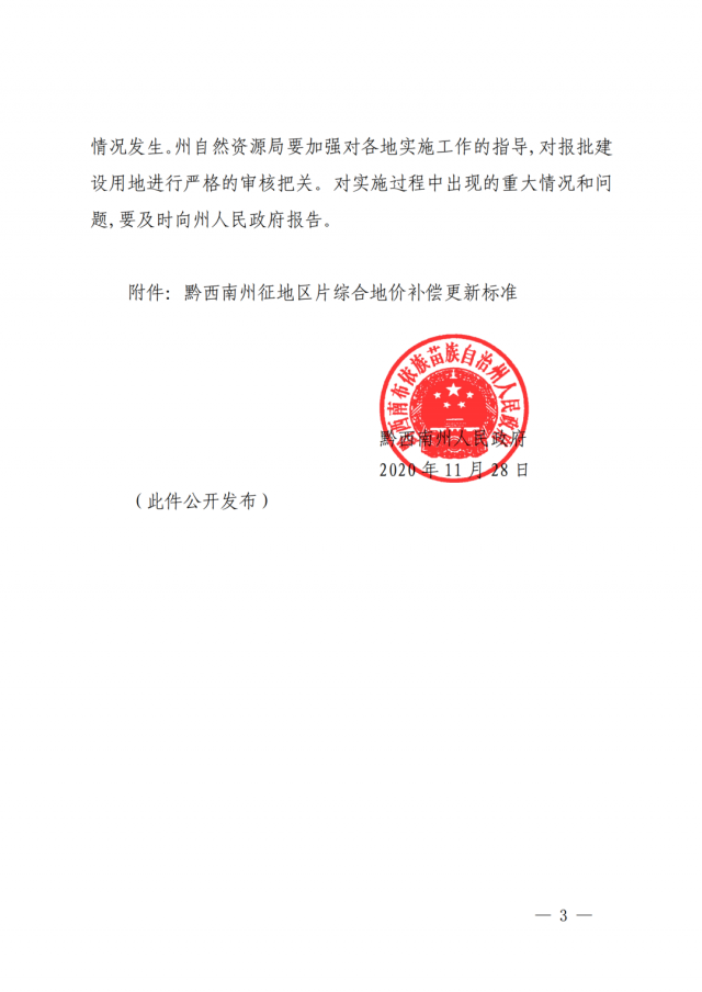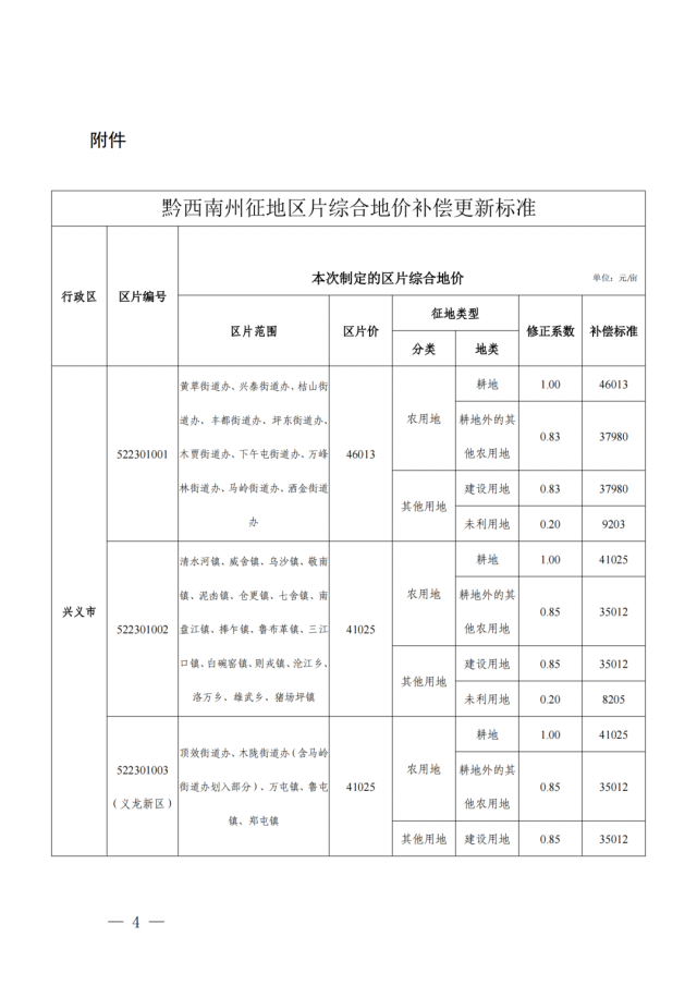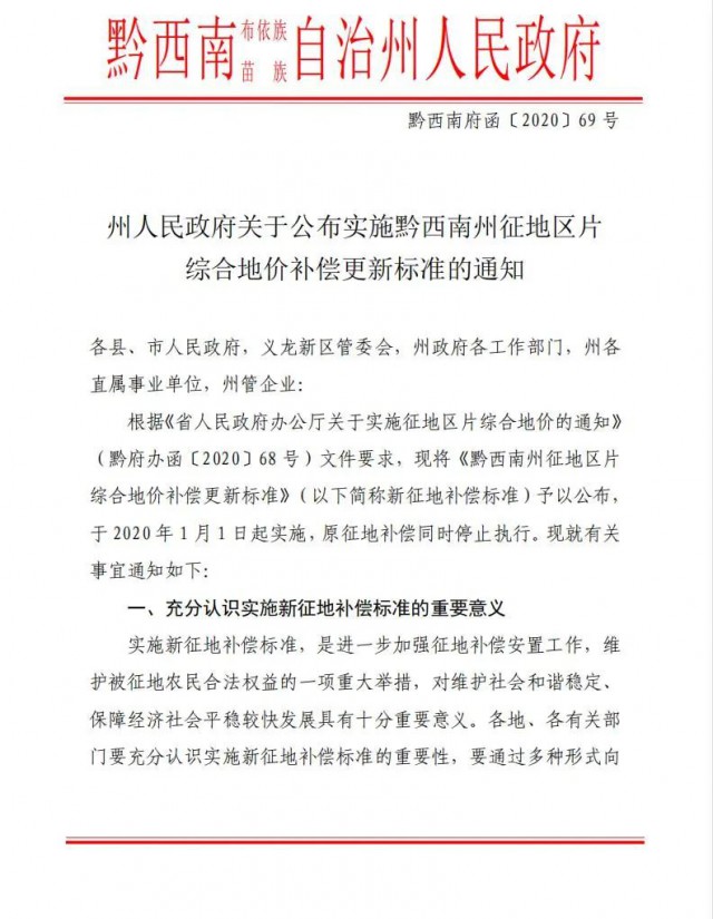 根據(jù)《州人民政府關(guān)于公布實施黔西南州征地區(qū)片綜合地價補(bǔ)償更新標(biāo)準(zhǔn)的通知》(黔西南府函〔2020〕69號)補(bǔ)償標(biāo)準(zhǔn)執(zhí)行。