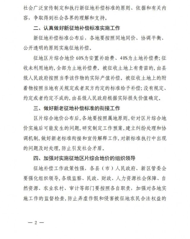 此外,根據(jù)黔西南州征地區(qū)片綜合地價補(bǔ)償更新標(biāo)準(zhǔn),各地要按照同地同價、協(xié)調(diào)平衡、 公開透明的原則實施征地補(bǔ)償。征地區(qū)片綜合地價60%為安置補(bǔ)助費、40%為土地補(bǔ)償費;征 收未利用地的,全部為土地補(bǔ)償費。被征收土地上有青苗的,由縣級人民政府按照當(dāng)季該作物的實際產(chǎn)值補(bǔ)償。被征收土地上的附著物按照當(dāng)?shù)赜嘘P(guān)規(guī)定或者雙方約定的標(biāo)準(zhǔn)給予補(bǔ)償;沒有規(guī)定、 約定或者約定不成的,由縣級人民政府根據(jù)實際損失價值確定。