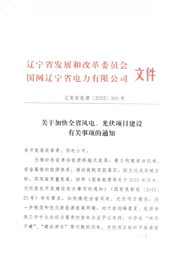 近日,遼寧省發(fā)展和改革委員會、國網(wǎng)遼寧省電力有限公司發(fā)布了《關(guān)于加快全省風(fēng)電、光伏項(xiàng)目建設(shè)有關(guān)事項(xiàng)的通知》。