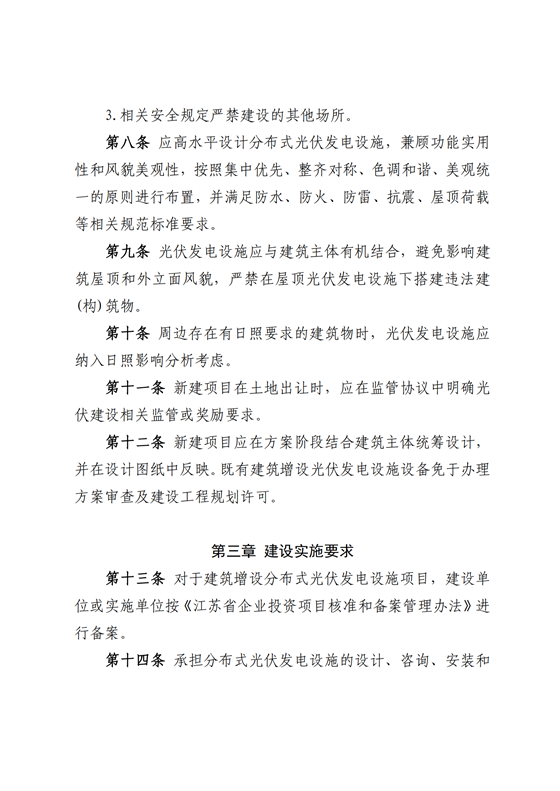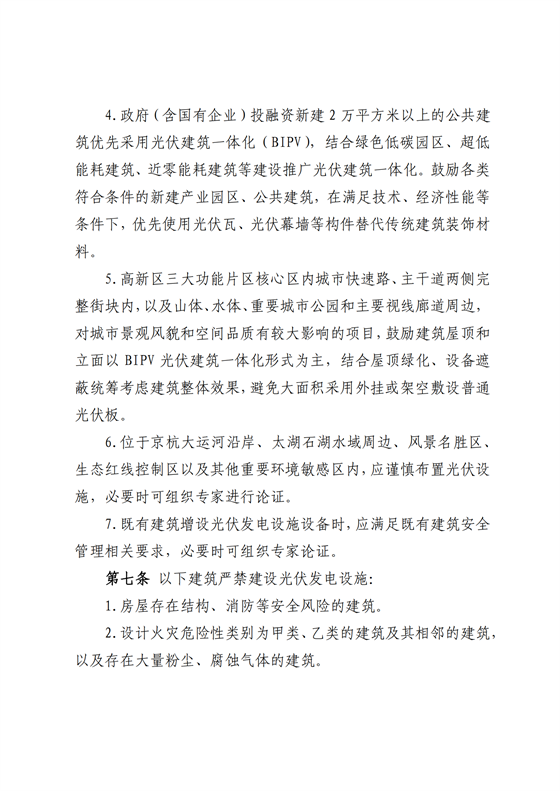 3.積極推進公共建筑光伏開發(fā)利用,鼓勵大型商超、倉儲物流、商務(wù)樓宇、賓館酒店、辦公樓宇、學(xué)校醫(yī)院、文體設(shè)施、城市展覽館、泵站水閘、自來水廠、污水處理廠等公共機構(gòu)建筑、公共基礎(chǔ)設(shè)施開發(fā)建設(shè)分布式光伏項目,在符合安全條件前提下按照“宜建盡建”原則安裝屋頂光伏發(fā)電設(shè)施。
