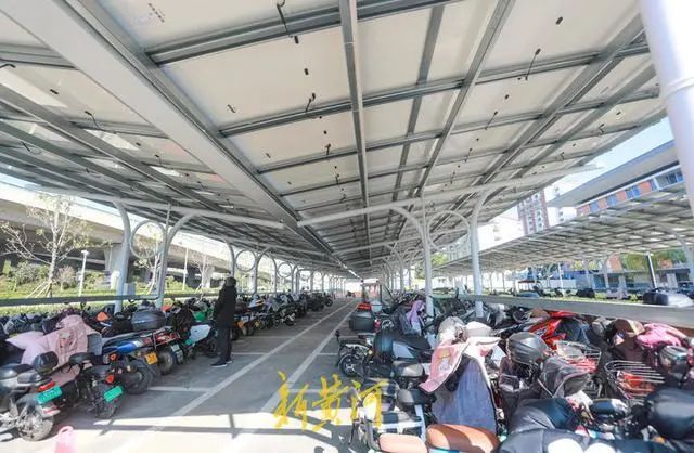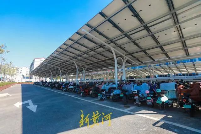 山東大學(xué)國家大學(xué)科技園停車場的車棚采用光伏一體化結(jié)構(gòu),光伏面板架設(shè)于停車位上方的鋼桁架上,以光伏電池板代替車棚頂面,既能避免車輛日曬雨淋,所發(fā)出的電力又能為園區(qū)、車棚提供照明,起到一舉多得的效果。車棚內(nèi)安裝了充電樁、儲能等配套設(shè)施,可以為電動(dòng)汽車、電動(dòng)自行車充電,實(shí)現(xiàn)了光儲充一體化,綠色低碳場景再添新貌,進(jìn)一步邁向智慧零碳園區(qū)。