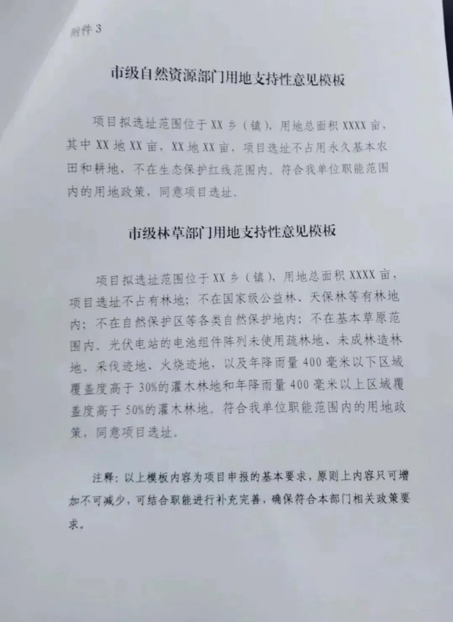 2.落實(shí)項(xiàng)目用地條件,風(fēng)電項(xiàng)目需提供全部風(fēng)機(jī)點(diǎn)位坐標(biāo)和升壓站四至范圍坐標(biāo),光伏項(xiàng)目需提供全部光伏場(chǎng)區(qū)、項(xiàng)目升壓站的四至范圍坐標(biāo),并取得市級(jí)自然資源、林草等部門(mén)關(guān)于項(xiàng)目選址符合用地政策且同意項(xiàng)目選址的意見(jiàn)。