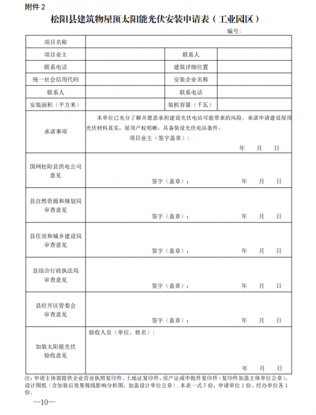 2.《松陽縣建筑物屋頂太陽能光伏安裝申請(qǐng)表》(工業(yè)園區(qū))