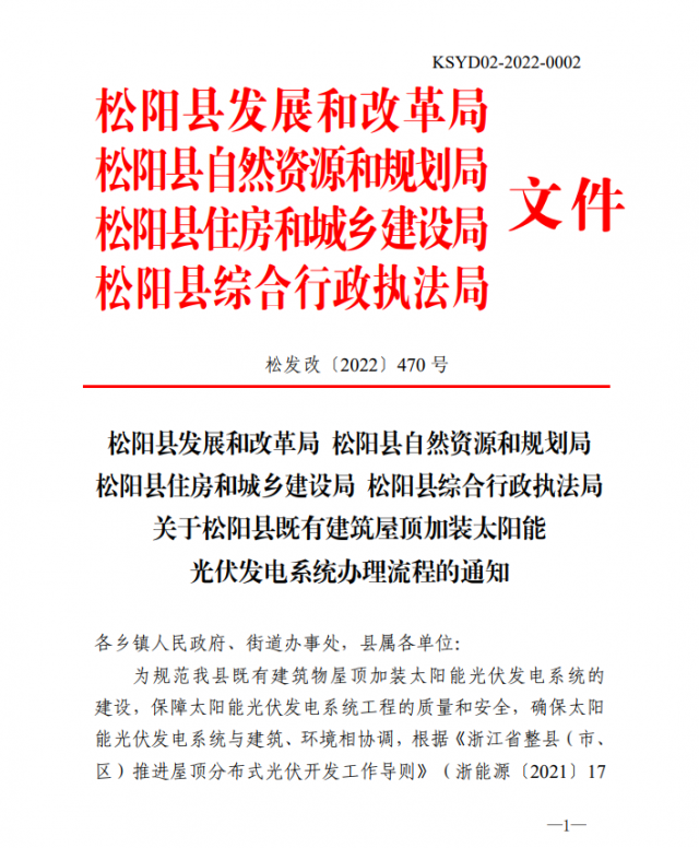 設(shè)局松陽縣綜合行政執(zhí)法局關(guān)于松陽縣既有建筑屋頂加裝太陽能光