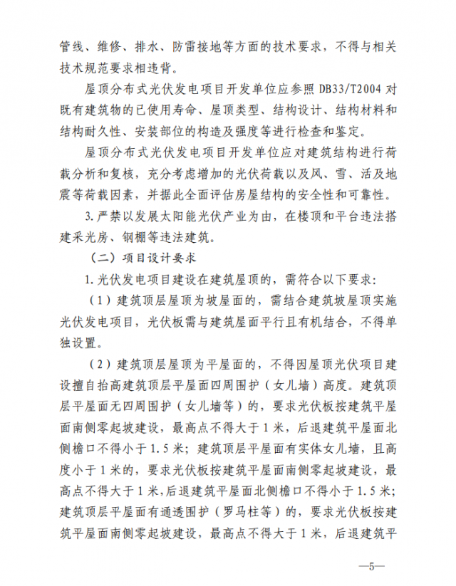 1.屋頂光伏項(xiàng)目建設(shè)需符合相關(guān)規(guī)劃,設(shè)計(jì)施工符合《浙江省整縣(市、區(qū))推進(jìn)屋頂分布式光伏開發(fā)工作導(dǎo)則》《浙江既有民用建筑加裝太陽能光伏系統(tǒng)設(shè)計(jì)導(dǎo)則》和本通知相關(guān)要求,并與周邊建筑物、景觀相協(xié)調(diào)。