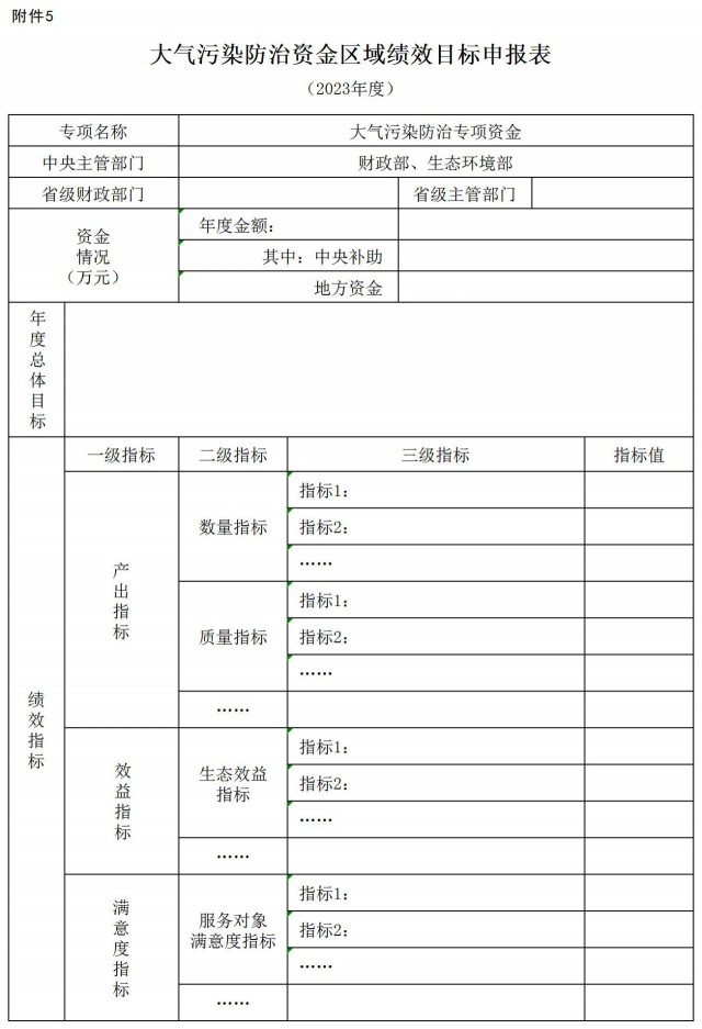 5.大氣污染防治資金區(qū)域績(jī)效目標(biāo)申請(qǐng)表
