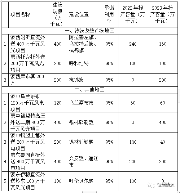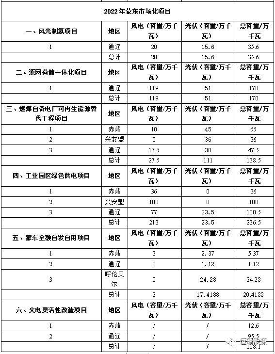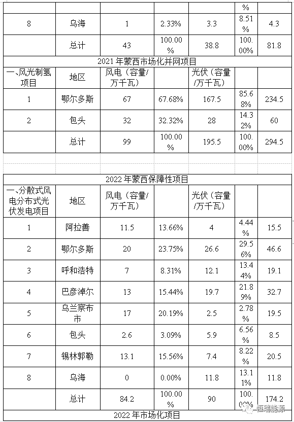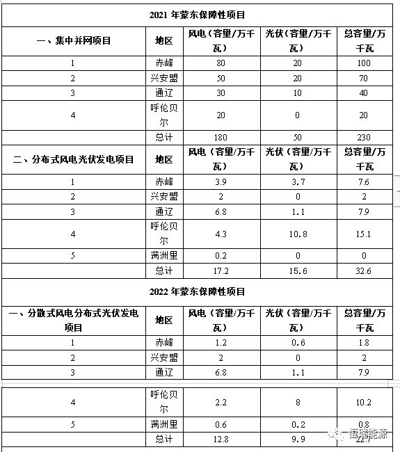 2、(蒙東地區(qū))2021~2022年可再生能源指標(biāo)分配情況表