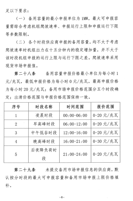 1月13日,山西能源監(jiān)管辦發(fā)布關于征求《山西正備用輔助服務市場交易實施細則(征求意見稿)》意見的函,文件指出,備用服務供應商:執(zhí)行備用市場交易結果,能夠響應調度指令,調整發(fā)電出力(或用電負荷)提供備用服務的市場主體,包括參與現(xiàn)貨市場的燃煤機組和燃氣機組,省調直調的新型儲能電站,虛擬電廠、可控負荷,以及具備調節(jié)能力的風電場、光伏電站等。新能源企業(yè)和電力用戶開展技術改造,具備穩(wěn)定提供備用輔助服務的條件后,需通過相關性能測試。
