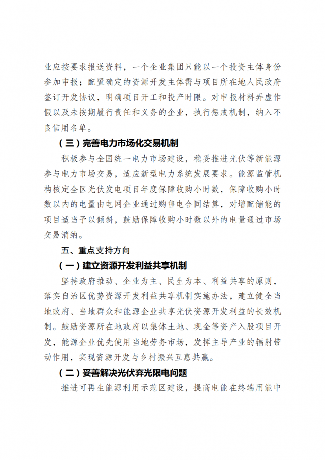 積極參與全國(guó)統(tǒng)一電力市場(chǎng)建設(shè),穩(wěn)妥推進(jìn)光伏等新能源參與電力市場(chǎng)交易,適應(yīng)新型電力系統(tǒng)發(fā)展要求。能源監(jiān)管機(jī)構(gòu)核定全區(qū)光伏發(fā)電項(xiàng)目年度保障收購(gòu)小時(shí)數(shù),保障收購(gòu)小時(shí)數(shù)以內(nèi)的電量由電網(wǎng)企業(yè)通過(guò)購(gòu)售電合同結(jié)算,對(duì)增配儲(chǔ)能的項(xiàng)目適當(dāng)予以傾斜,鼓勵(lì)保障收購(gòu)小時(shí)數(shù)以外的電量通過(guò)市場(chǎng)交易消納。