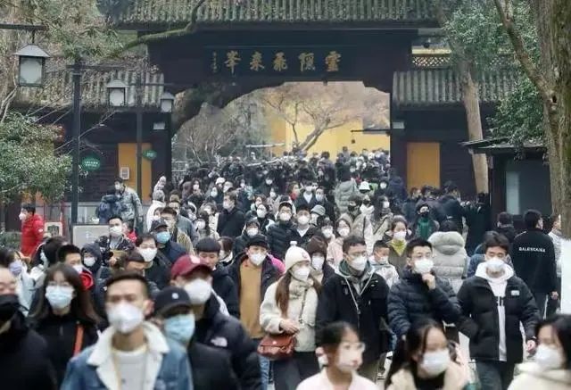 2023新年全民祈福,全國游客量排名第一的靈隱寺人山人海,一眼望過去全是黑壓壓的人頭。